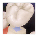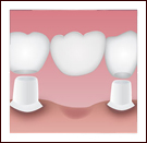 Unlike partial dentures, bridges are permanent; patients need not remove them. The missing tooth is replaced with an artificial tooth connected between two crowns (caps), which are permanently cemented or bonded on the adjacent teeth. |