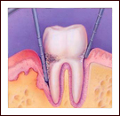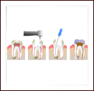 In simple terms, root canal treatment is the removal of the infected soft tissue within the tooth and its replacement by an artificial inert ‘filling’ material. This procedure basically saves the tooth and eliminates dental pain. |